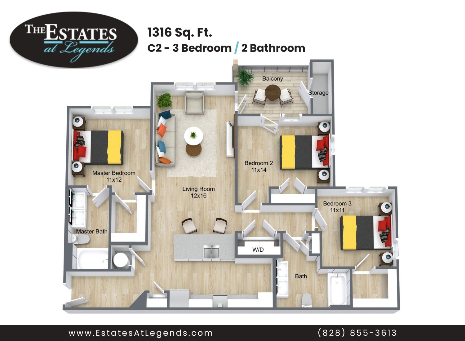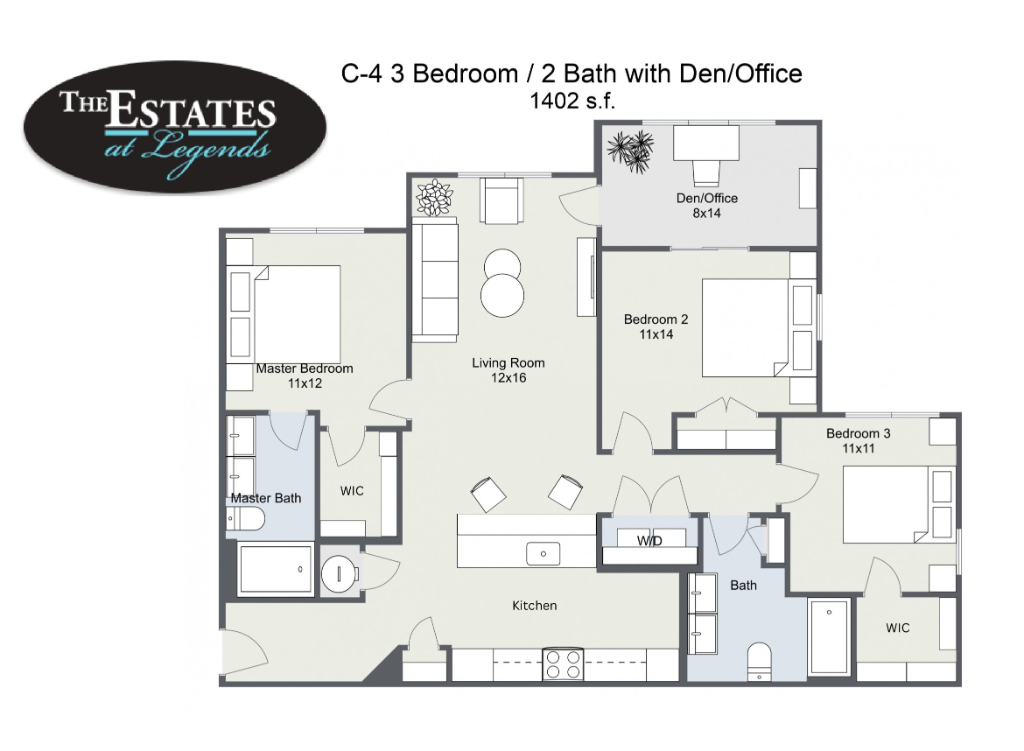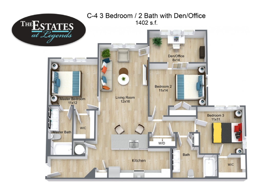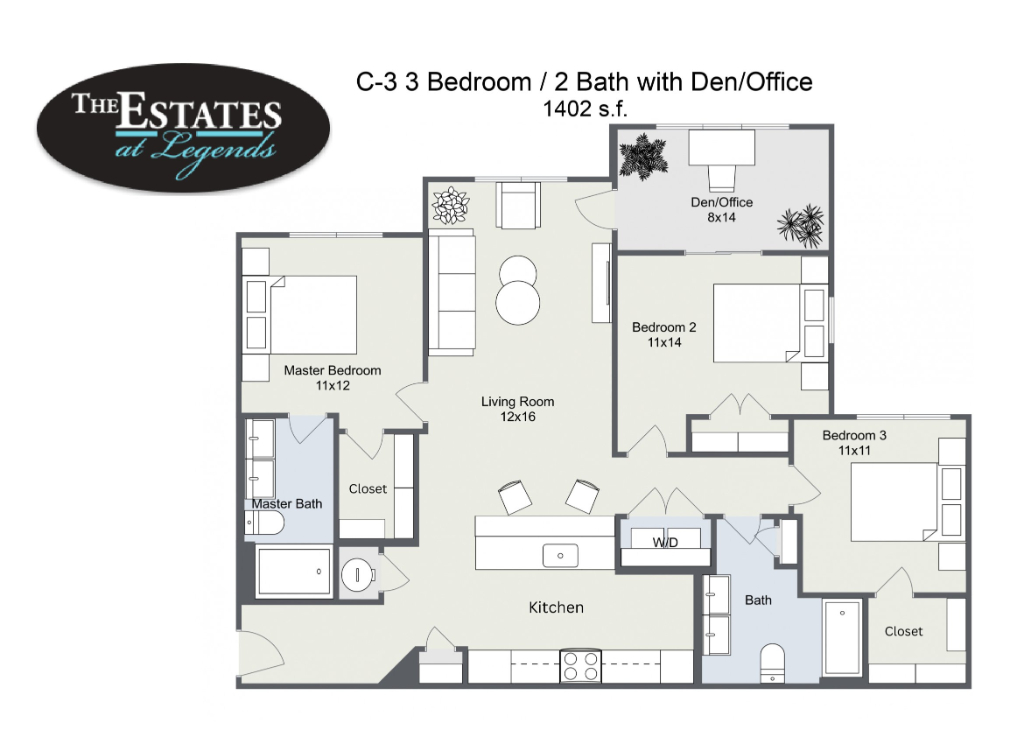 We understand that everyone's living needs are different, which is why we offer a variety of spacious, thoughtfully designed floor plans to choose from. Whether you're looking for a cozy one-bedroom apartment or need extra space in a two- or three-bedroom unit, Estates at Legends has the perfect floor plan to suit your lifestyle.