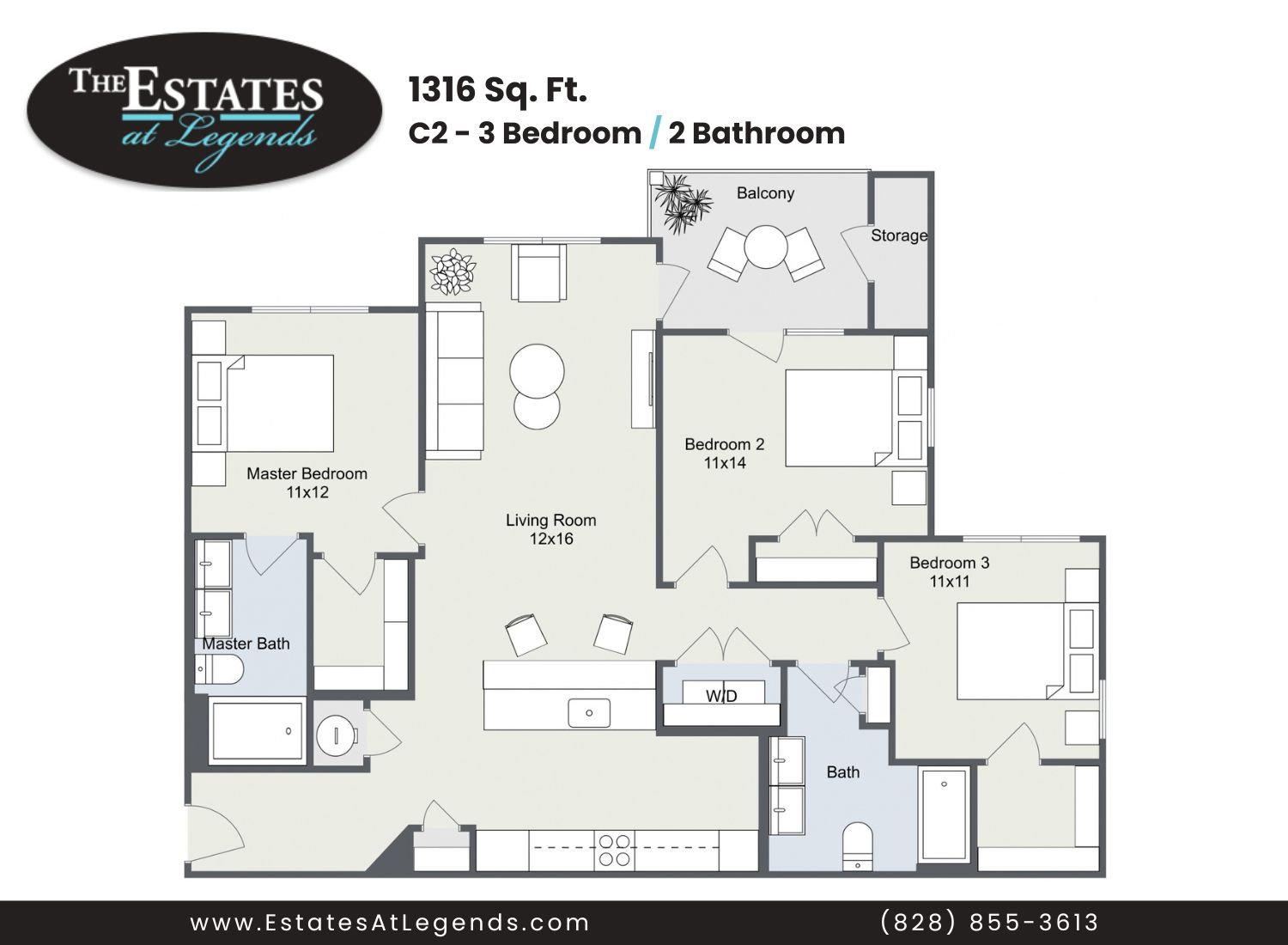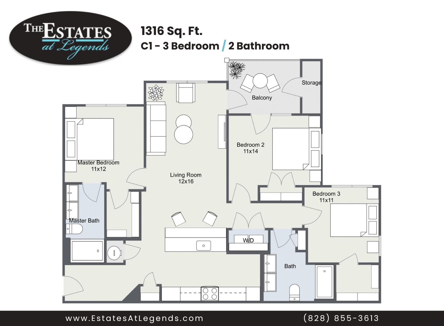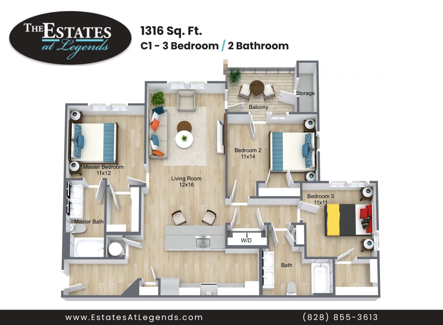 We understand that everyone's living needs are different, which is why we offer a variety of spacious, thoughtfully designed floor plans to choose from. Whether you're looking for a cozy one-bedroom apartment or need extra space in a two- or three-bedroom unit, Estates at Legends has the perfect floor plan to suit your lifestyle.